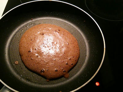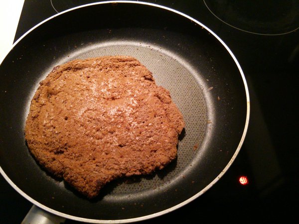 もう焼けただろうか。レシピにもすぐ火が通るから気をつけてって書いてあるし!とフライ返しでひっくり返すタイミングをはかっていたらフライパン一面に広がっていた生地がこんなに小さくなってしまいましたよ!!!