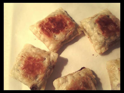 要は市販のパイ生地でチョコを包んで卵塗ってフライパンで焼くだけという!!