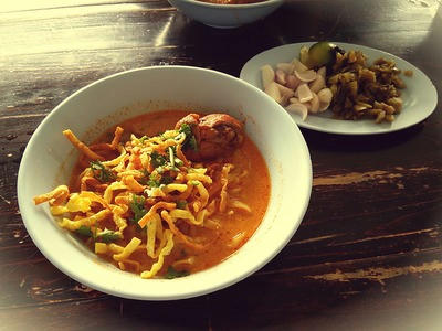 ベジタリアン料理のお店や教室もやってる校長先生がカオソーイを作ってくれたことも。ココナッツミルクが効いててまろやかでコクがあって辛くてすっごくおいしかった(๑>∀<๑)♡